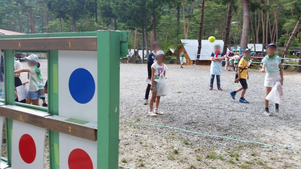 ストラックアウトなどのゲームを楽しみながら、場内の位置関係を確認します。