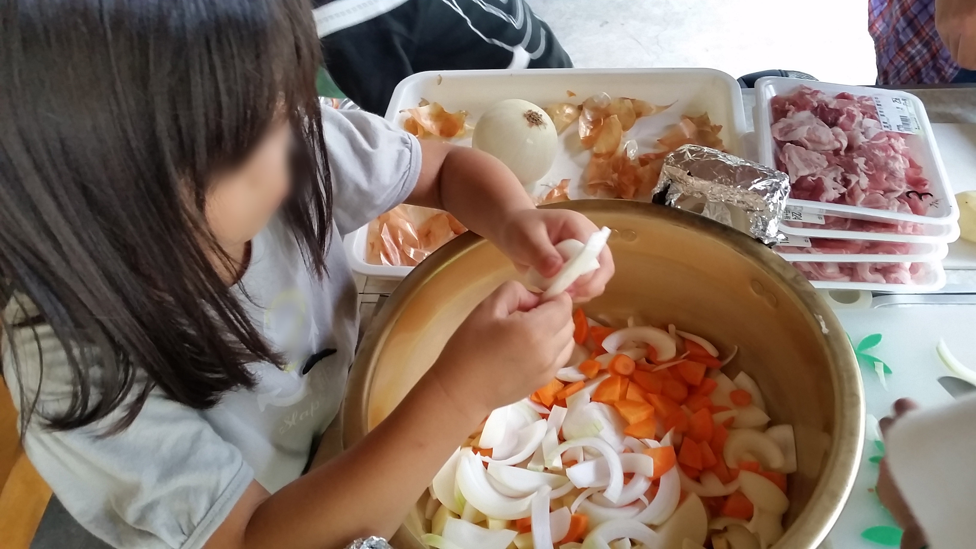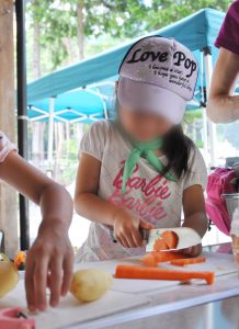 普段から学童の昼食やキャンプへ向けての活動を通して調理をしている子ども達。なかなか手際がいいです!
