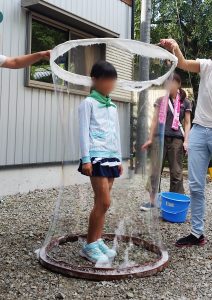 シャボン玉の中に全身すっぽり!