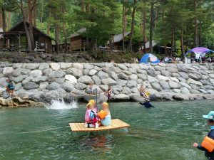 1年生も仲良くイカダに乗船 *^ ^*