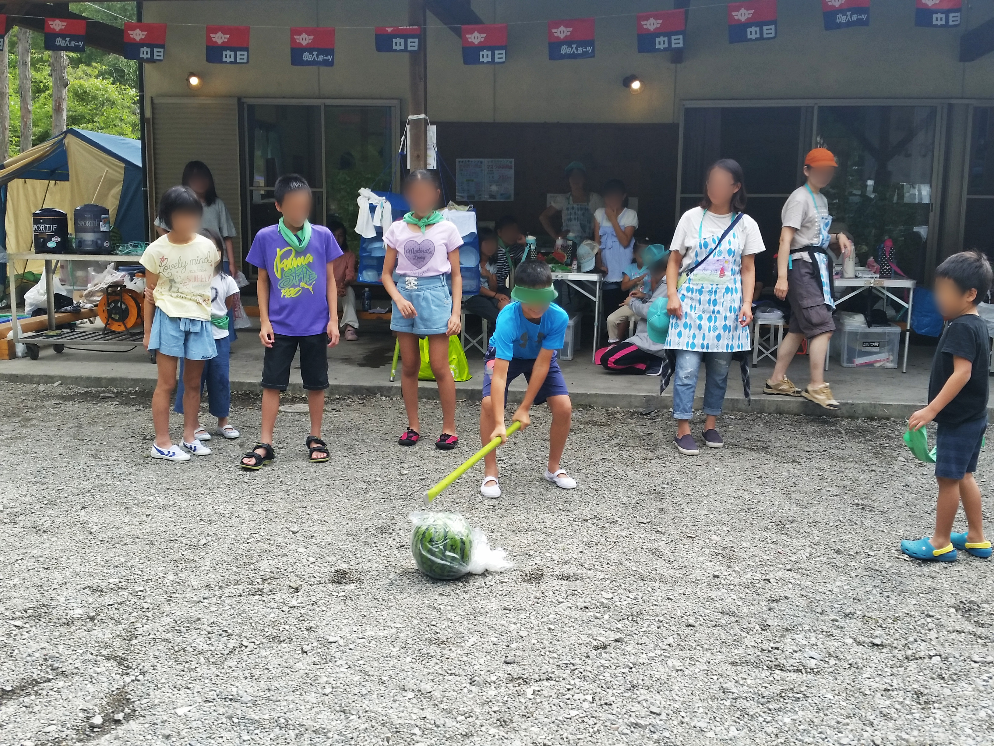 川遊びの後は夏の定番?スイカ割り。