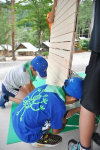 高学年は川遊びのイカダの仕上げを頑張っていました。